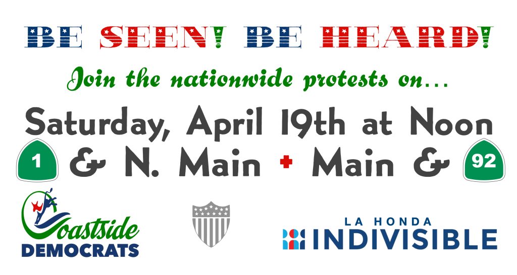 We need to keep protesting to ensure our voices are heard! Coastside Democrats are joining up with La Honda Indivisible again, and this time the protests will be centered in downtown Half Moon Bay.